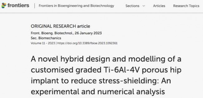 多孔髋关节柄的长期存活评估基于几个因素,包括应力屏蔽、疲劳强度和骨向内生长。英国伦敦大学发表的《A novel hybrid design and modelling of a customised graded Ti-6Al-4V porous hip implant to reduce stress-shielding: An experimental and numerical analysis》的研究现实,科学家们开发了一种优化的、功能分级的含混合螺旋-金刚石结构的Ti6Al4V 合金多孔髋关节柄,具有股骨范围内的整体刚度分布、更高的强度以承受 500 万次循环,并且孔隙率分布有利于增强骨整合。