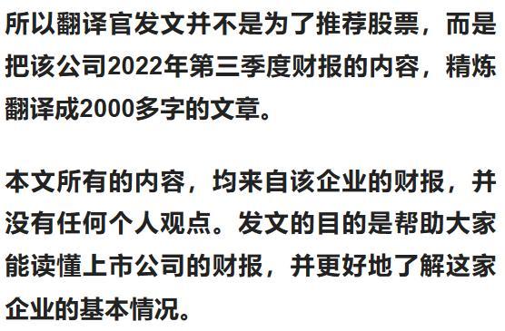 但是在2022年第三季度,该企业的现金流却出现了减弱的迹象,这势必会影响公司未来的发展,在本文的最后翻译官会详细介绍这些细节。