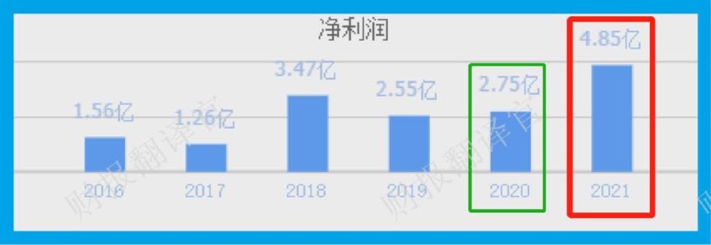 2021年该企业全年的净利润为4.85亿元,这不仅比2020年增长了77%,还创出了历史新高,该公司在这一年里发生了质的飞跃。
