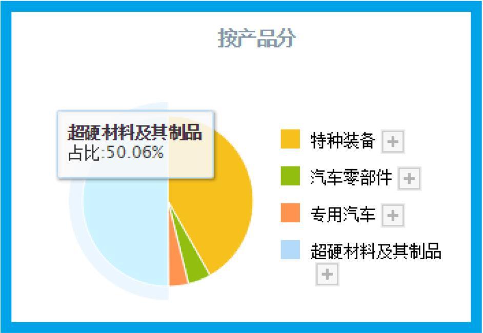 公司超硬材料的收入占比为50.06%,特种装备的收入占比为41.79%。
