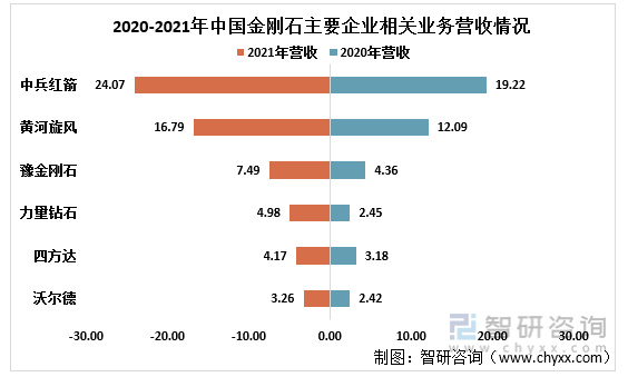 2020-2021年中国金刚石主要企业相关业务营收情况