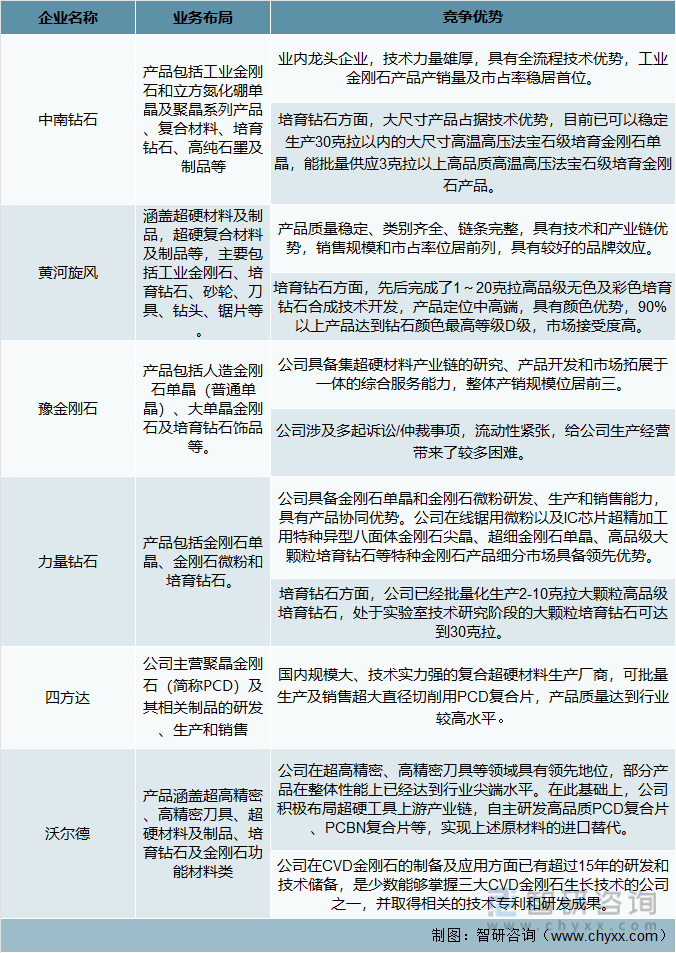 以上数据及信息可参考智研咨询(www.chyxx.com)发布的《2023-2029年中国金刚石行业市场全景调查及竞争格局预测报告》。智研咨询是中国产业咨询领域的信息与情报综合提供商。公司以“用信息驱动产业发展,为企业投资决策赋能”为品牌理念。为企业提供专业的产业咨询服务,主要服务包含精品行研报告、专项定制、月度专题、可研报告、商业计划书、产业规划等。提供周报/月报/季报/年报等定期报告和定制数据,内容涵盖政策监测、企业动态、行业数据、产品价格变化、投融资概览、市场机遇及风险分析等。