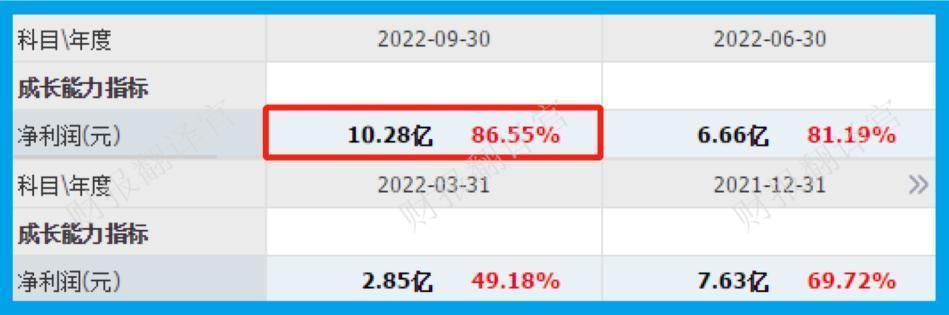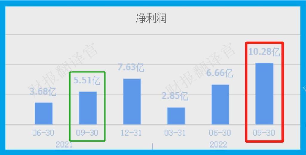2021年第三季度,该企业的净利润为5.51亿元。到了2022年第三季度,这家公司的净利润就达到了10.28亿元,同比增长了87%。