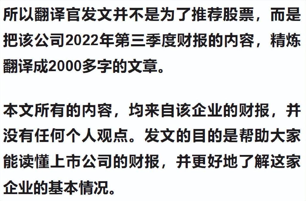但是在2022年第三季度,该企业的销售净利率却出现了下降,这势必会减少公司的收益,在本文的最后翻译官会详细介绍这些细节。