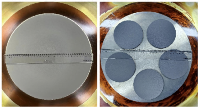 同时,团队将915MHz大功率MPCVD的金刚石沉积面积扩展到12英寸,实现了低应力、超低翘曲4英寸金刚石薄膜的单机5片同时合成。结合上述高效“自剥离”技术,为“自支撑”金刚石薄膜的工业化批量生产奠定了装备与工艺基础。(青云)